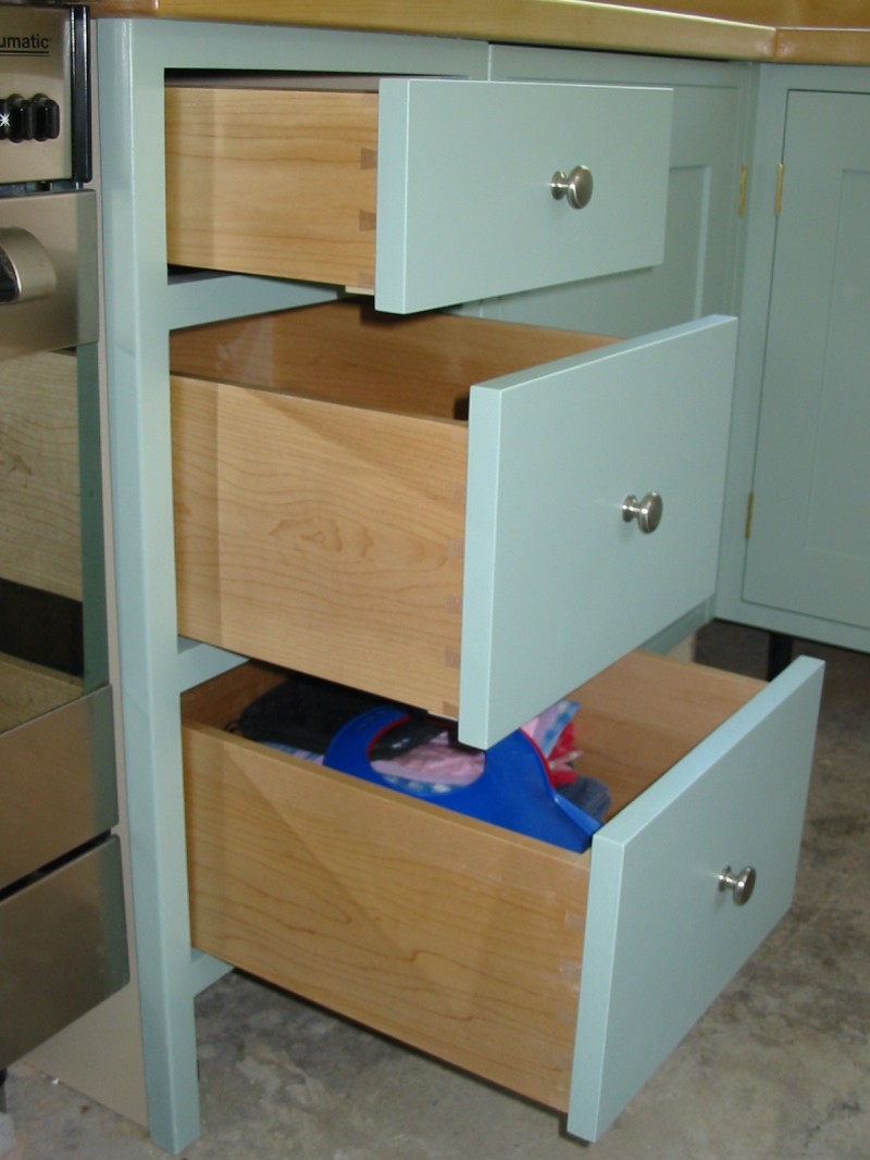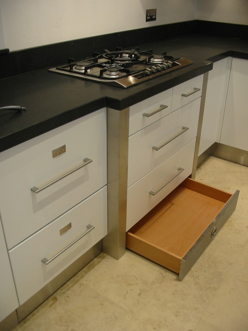 Drawers are also specially made in any shape and size with a choice of drawer runners. Solid timber drawers would be dovetailed together for both strength and appearance. Alternatively metal sided drawers can be used if prefered.
