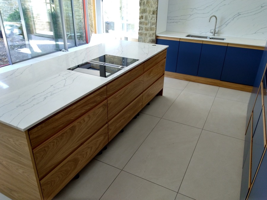 Painted kitchen with quartz worktops.
