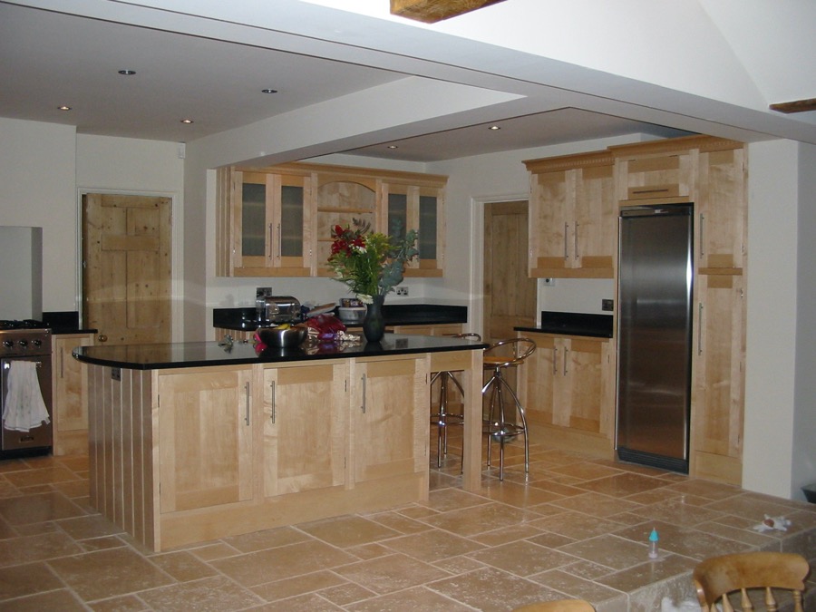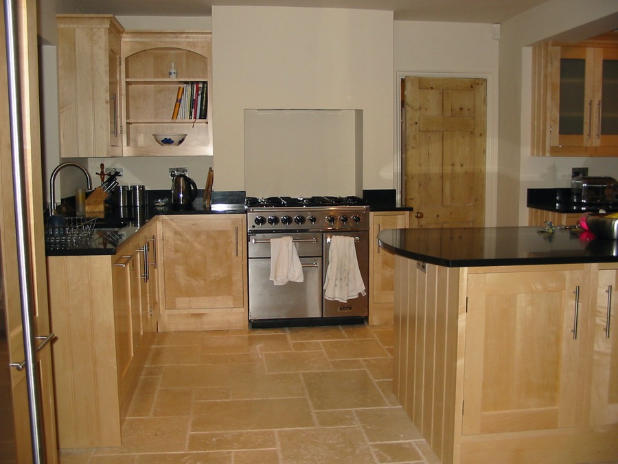 Maple kitchen with granite worktops.