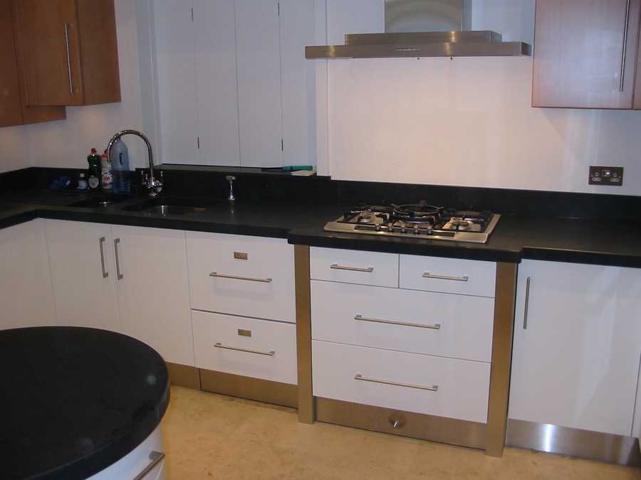 Worktops are commonly solid timber, granite, quartz or marble or perhaps a combination of two. These materials give complete flexibility in shape and allow for various styles of sink. Other materials such as “Corian” can also be used.