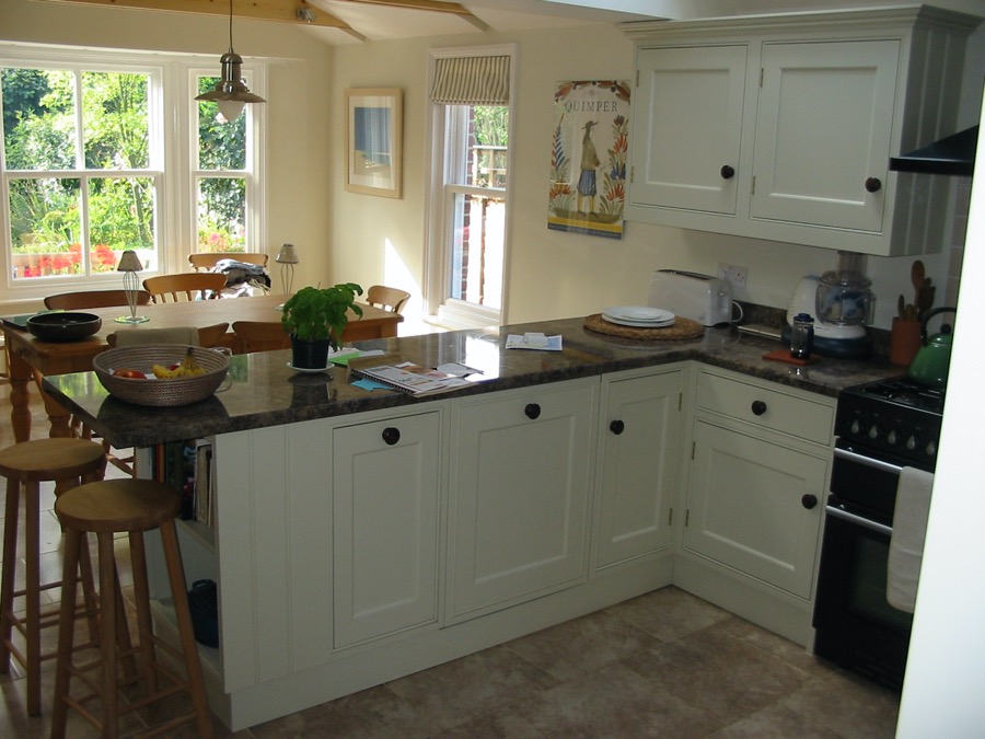 Hand painted shaker style kitchen with granite worktops.